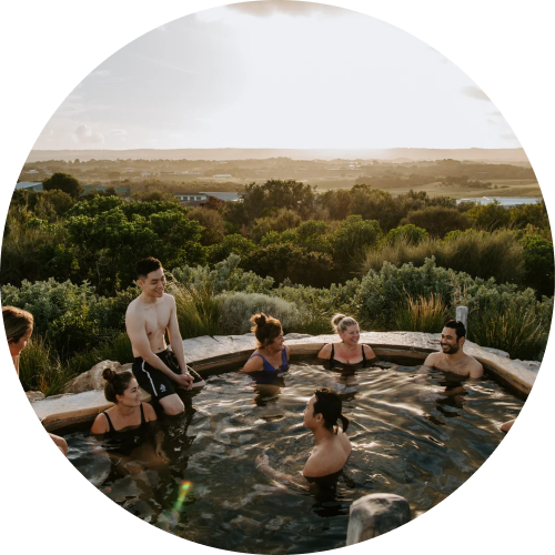 Горячие источники рядом с Мельбурном. Если хочешь большего, то всего в 1,5–2 часах от города начинаются природные термальные курорты. Самые старые и известные – Peninsula Hot Springs (Сайт / Instagram / Google Maps – 140 Springs Ln, Fingal) на полуострове Морнингтон (Mornington Peninsula). Это комплекс с 70 купальнями под открытым небом, хаммамом, сауной, spa-процедурами и панорамными видами. Добираться придется на машине или с туром. Но если тебе не чужд бэкпекерский тревел-стайл, то можешь добраться на поезде до Фрэнкстона (Frankston), а оттуда на автобусе 788 вдоль побережья до городков Рай или Розбад (ближайшие к источникам). Оттуда до комплекса довезет Uber за 20–30 AUD (€11–18) в одну сторону. Лайфхак: сессии в будни после 6 вечера дешевле. Еще лайфхак: комплекс работает до 11 вечера, и во сколько бы ты ни зашел(-а), можешь спокойно оставаться до закрытия. Если приехал(-а) на общественном транспорте и собираешься остаться на вечернюю сессию (рекомендуем!), не забудь забукать жилье на ночь.