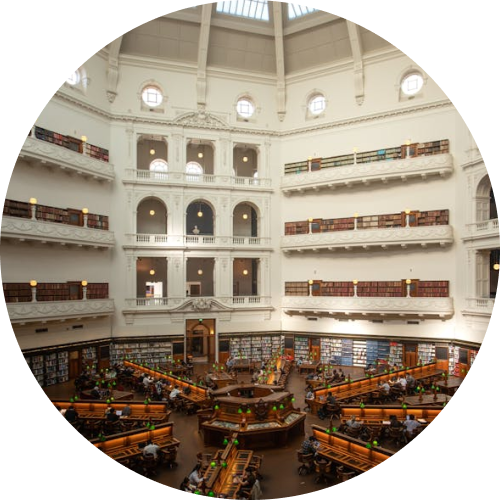 Затем дойди до Swanston Street, поверни направо и через два квартала окажешься в одной из самых красивых библиотек мира – Библиотеке штата Виктория (State Library of Victoria / Сайт / Google Maps – 328 Swanston St, Melbourne), основанной в 1854 году. На площади перед входом сможешь сыграть в огромные шахматы и почувствовать себя персонажем «Алисы в Зазеркалье» или книг о Гарри Поттере. А внутри – восхититься читальным залом La Trobe под высоким куполом, где вдоль стен стоят стеллажи книг, а от центра многоконечной звездой расходятся деревянные столы с зелеными настольными лампами. В библиотеке есть свой музей, проводятся выставки, семинары и экскурсии. Вход свободный: сюда не нужно записываться или платить за регистрацию. Просто приходишь и занимаешь свободное место в одном из читальных залов. В библиотеке есть розетки, Wi-Fi, питьевая вода.