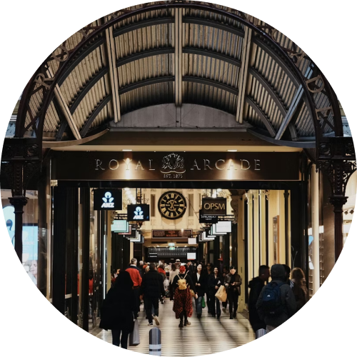 Одна из особенностей Мельбурна – узкие крытые улочки-аркады, которые соединяют центральные улицы. Внутри теснятся бутики, винтажные лавки, кофейни и закусочные. По аркадам, конечно же, придумали отдельный маршрут – его особенно приятно проходить зимой или если на улице холодно и дождь. В аркадах тепло от кафе и магазинов и есть крыши. Прогулка длиной в 2,5 км рассчитана на 2 часа, но ты почти наверняка зависнешь в одном из бесчисленных баров или магазинчиков.