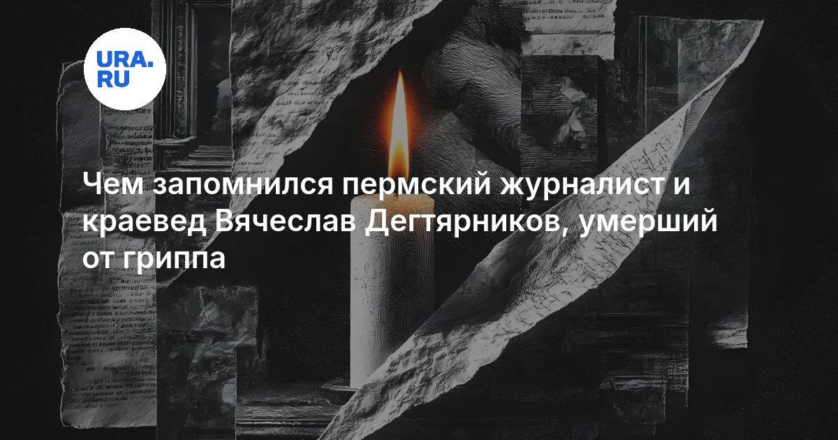 Вячеслав Дегтярников скончался 11 октября от гриппа, быстро поразившего все органы. Ему было 57 лет. «Вячеслава все знали и знают как в высшей степени порядочного, доброго и умного человека. Профессионала с большой буквы. Он многим в своей жизни помог и словом, и делом», — написано на сайте пермского отделения Союза журналистов России.