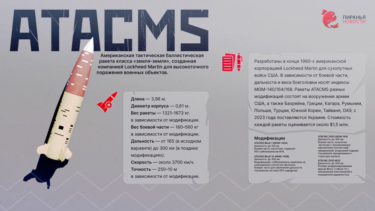 Π Ρ ΠΎΠ΄Π΅ Π‘ΠΠ Π£ΠΊΡΠ°ΠΈΠ½Π° Π½Π°ΡΠ°Π»Π° ΠΈΡΠΏΠΎΠ»ΡΠ·ΠΎΠ²Π°ΡΡ ATACMS ΠΏΠΎΡΠ»Π΅ ΠΈΡ ΠΏΠΎΡΡΠ°Π²ΠΎΠΊ ΠΎΡ Π‘Π¨Π, ΡΡΠΎ ΠΏΠΎΠ·Π²ΠΎΠ»ΠΈΠ»ΠΎ Π·Π½Π°ΡΠΈΡΠ΅Π»ΡΠ½ΠΎ ΡΠ°ΡΡΠΈΡΠΈΡΡ Π²ΠΎΠ·ΠΌΠΎΠΆΠ½ΠΎΡΡΠΈ ΠΏΡΠΎΡΠΈΠ²Π½ΠΈΠΊΠ° ΠΏΠΎ ΠΏΠΎΡΠ°ΠΆΠ΅Π½ΠΈΡ ΠΊΠ»ΡΡΠ΅Π²ΡΡ ΠΎΠ±ΡΠ΅ΠΊΡΠΎΠ².
