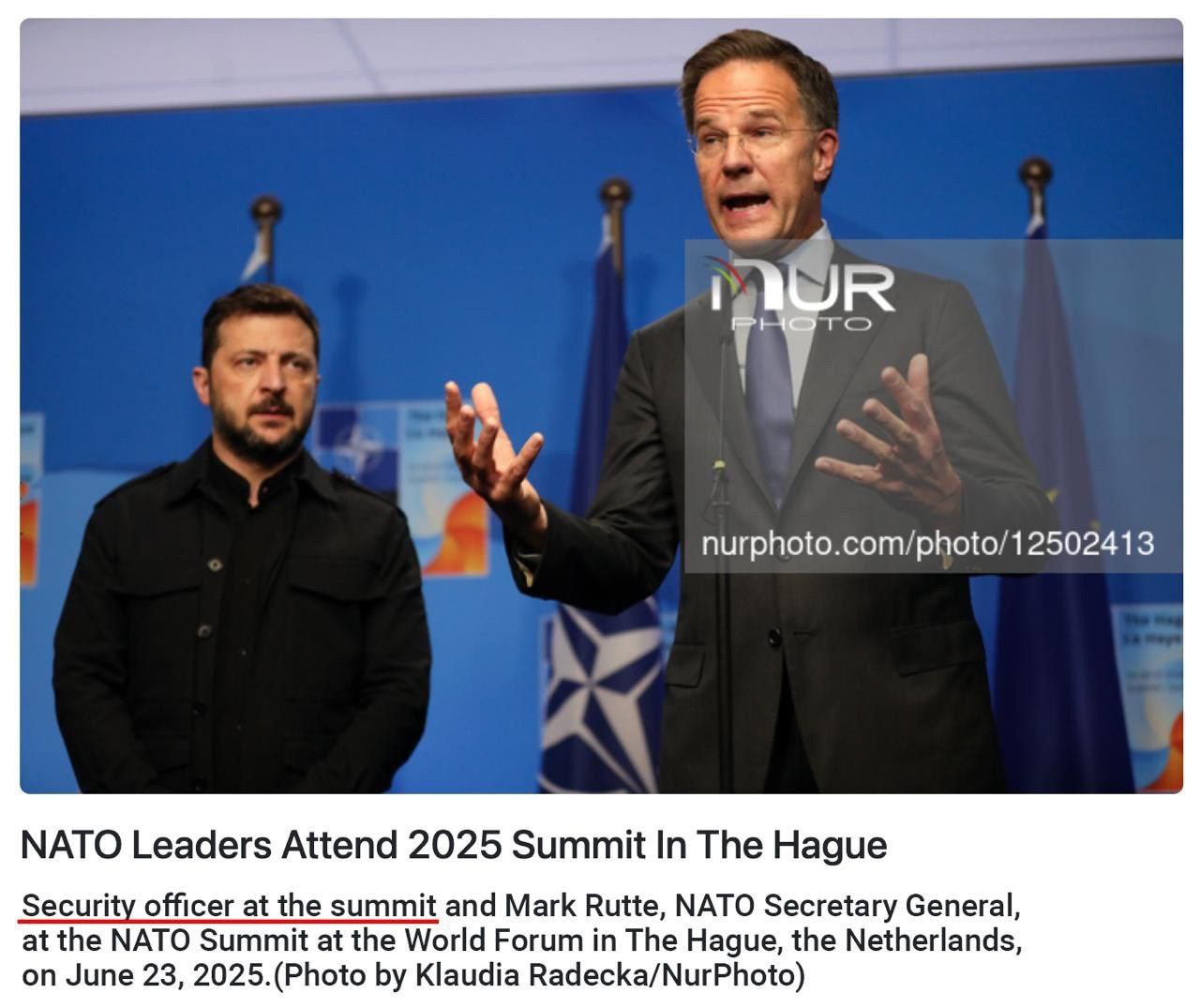 Фотографы подписали его совместное фото с генсеком НАТО как "Марк Рютте с офицером безопасности". Возможно, свою лепту внес его странный черный костюм, похожий на форму.