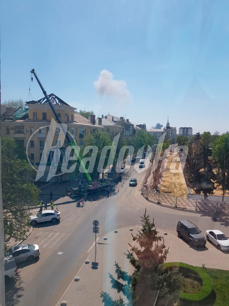 По предварительным данным, ВСУ зарядили по мирному городу ракетами. Сейчас на месте прилета начался пожар, а в небо устремляется столб дыма. Спасатели выехали к месту.