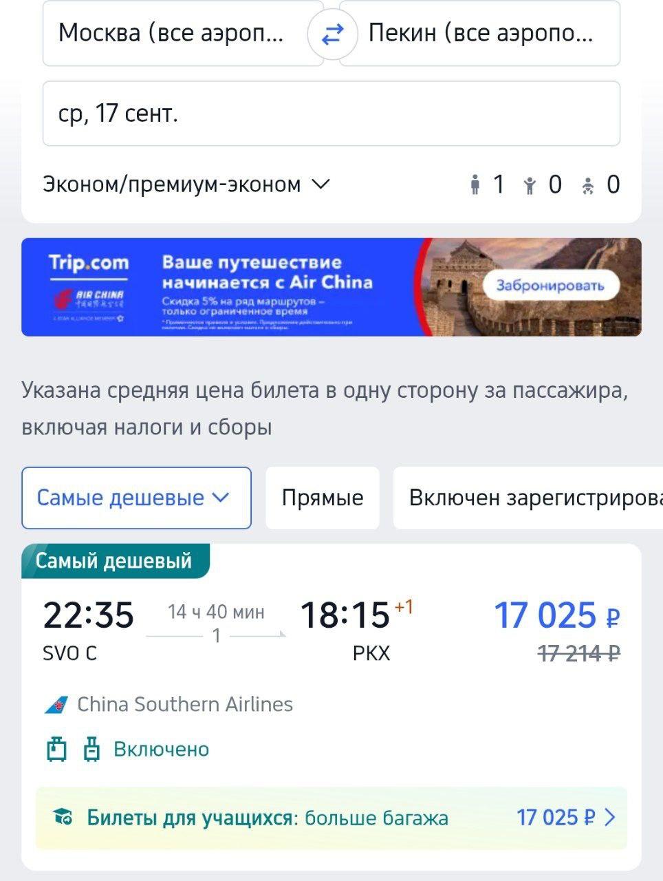 ❗️ Уже сейчас билеты из Москвы в Пекин можно урвать за 16-17 тысяч рублей – вылеты как раз совпадают с началом действия безвиза.