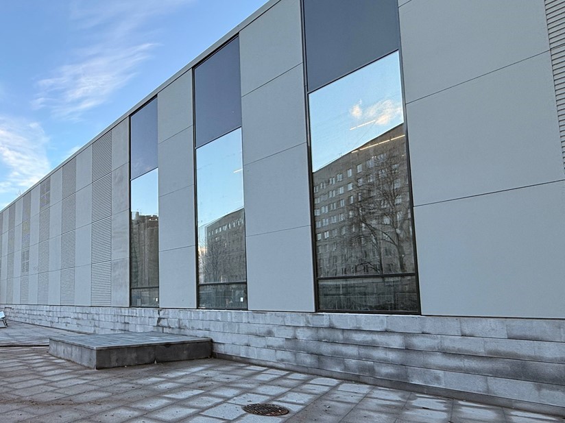 Со стороны входной группы, выходящей на улицу Васи Алексеева, полностью установлены все двери для входа и выхода из вестибюля, а также двери коммерческих помещений.