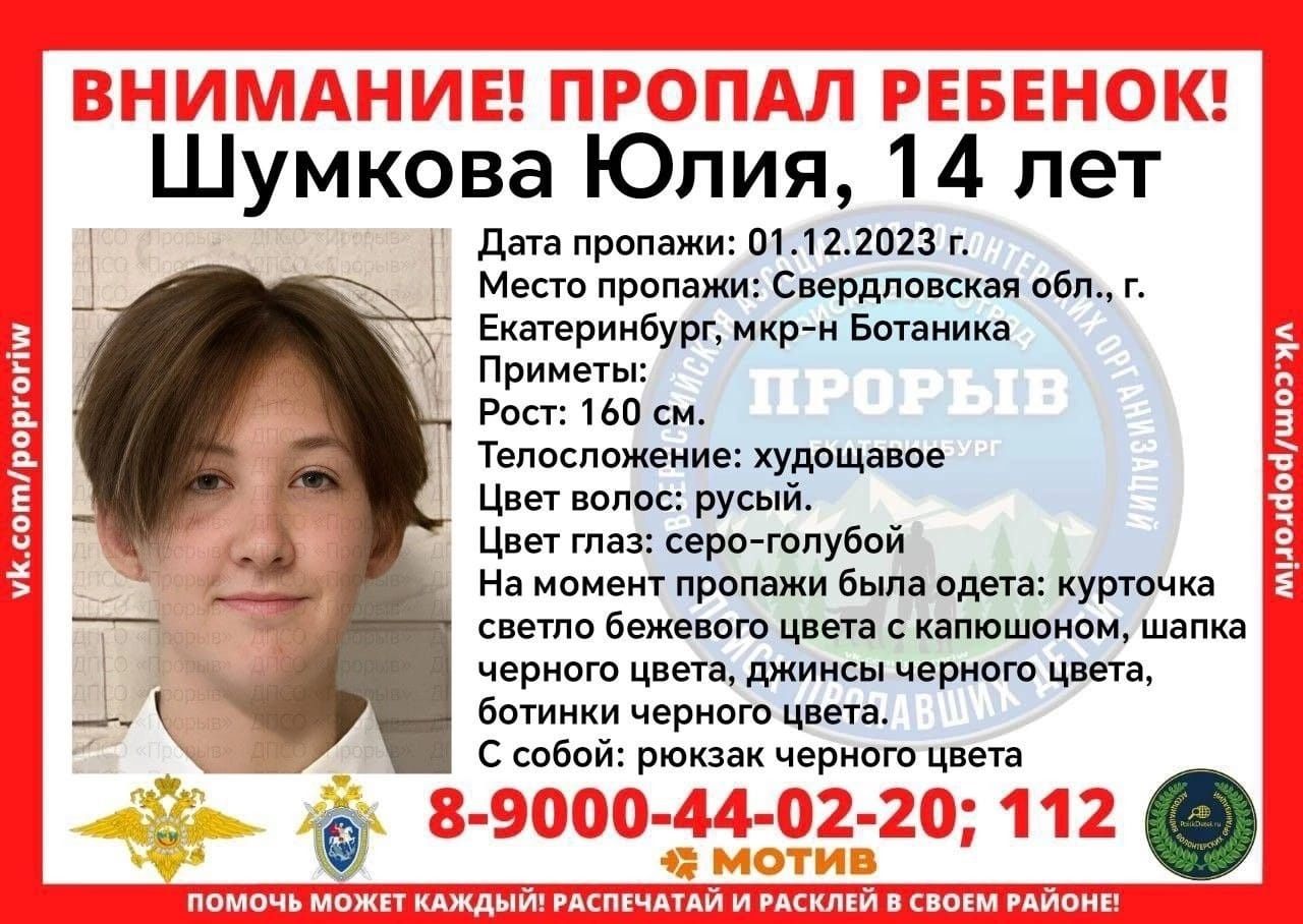 Вышла из школы и не вернулась домой: в Екатеринбурге пропала 14-летняя школьница