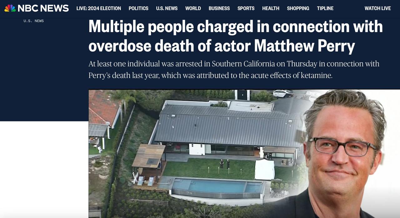 Полиция арестовала нескольких человек по делу о смерти актёра Мэттью Перри, среди них один врач, — NBC News