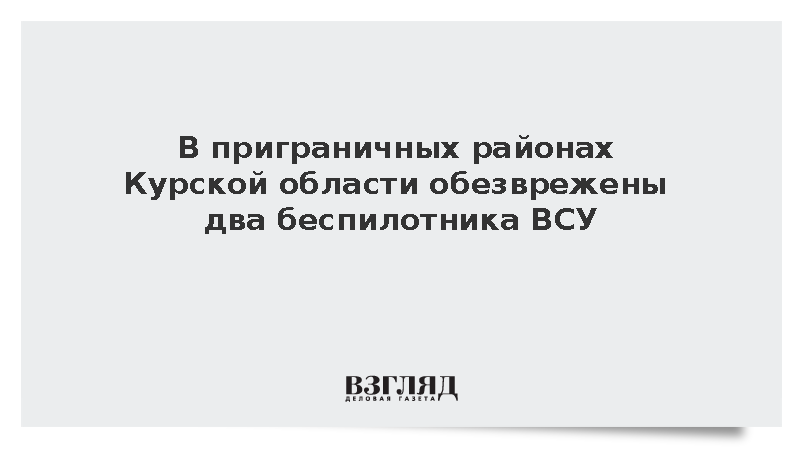 Глава Курской области сообщил в своем Telegram-канале, что на приграничных территориях региона обезврежены два БПЛА ВСУ: в районе села Козино Рыльского района и недалеко от села Горналь Суджанского. Он уточнил, что оба украинских беспилотника обнаружили с помощью комплексов радиоэлектронной борьбы (РЭБ) и посадили антидроновыми ружьями.
