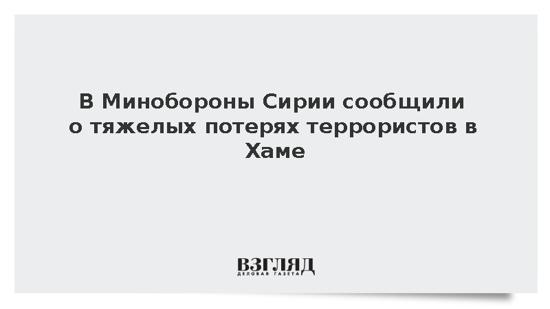 По информации, опубликованной Минобороны Сирии, террористические формирования понесли большие потери в результате авиаударов, поддержанных российской авиацией, в северной части провинции Хама. В своем заявлении сирийское ведомство отметило, что армейские подразделения «со всей решимостью и мужеством» участвуют в ожесточенных столкновениях с вооруженными террористическими группировками в этом регионе, передает ТАСС.