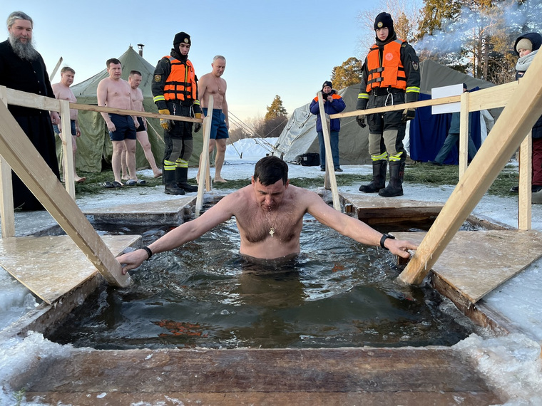 «Губернатор посмотрел, как работает святочная ярмарка, по традиции развернувшаяся в ските Свято-Николаевского монастыря. И здесь же окунулся в крещенскую купель», — рассказали в департаменте. Вместе с Куйвашевым в проруби побывали вице-губернатор Олег Чемезов, глава областного исполкома «Единой России» Дмитрий Жуков и мэр Верхотурья Алексей Лиханов.