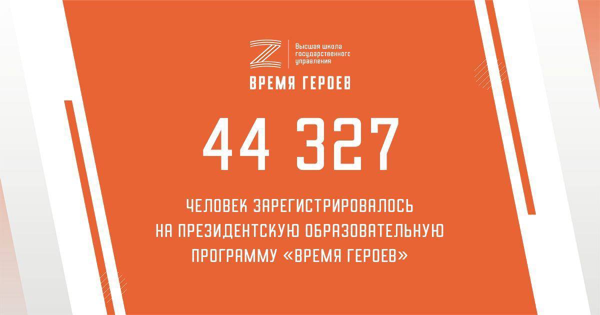 π·πΊΠ‘Π΅Π³ΠΎΠ΄Π½Ρ Π·Π°Π²Π΅ΡΡΠΈΠ»ΡΡ ΡΡΠ°ΠΏ ΡΠ΅Π³ΠΈΡΡΡΠ°ΡΠΈΠΈ Π·Π°ΡΠ²ΠΎΠΊ Π½Π° ΠΏΠ΅ΡΠ²ΡΠΉ ΠΏΠΎΡΠΎΠΊ ΠΏΡΠ΅Π·ΠΈΠ΄Π΅Π½ΡΡΠΊΠΎΠΉ ΠΎΠ±ΡΠ°Π·ΠΎΠ²Π°ΡΠ΅Π»ΡΠ½ΠΎΠΉ ΠΏΡΠΎΠ³ΡΠ°ΠΌΠΌΡ Β«ΠΡΠ΅ΠΌΡ Π³Π΅ΡΠΎΠ΅Π²Β». ΠΡΠ΅Π³ΠΎ Π½Π° ΠΡΠΎΠ³ΡΠ°ΠΌΠΌΡ ΠΏΠΎΡΡΡΠΏΠΈΠ»ΠΎ 44 327 Π·Π°ΡΠ²ΠΎΠΊ ΠΎΡ ΠΏΡΠ΅Π΄ΡΡΠ°Π²ΠΈΡΠ΅Π»Π΅ΠΉ Π²ΡΠ΅Ρ ΡΡΠ±ΡΠ΅ΠΊΡΠΎΠ² ΡΡΡΠ°Π½Ρ.