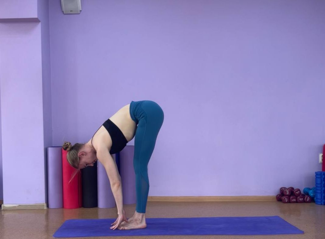 - Пытайтесь дотронуться до стоп руками, сохраняя спину прямой.