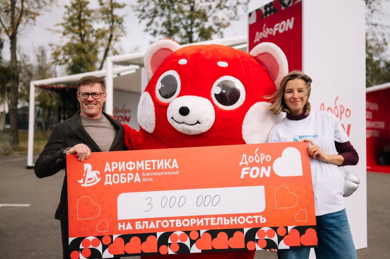 ДоброFON перечислит более 4.5 млн рублей в фонд «Арифметика добра» по итогам Московского марафона. В стартово-финишном городке работали специальные зоны с благотворительными активностями – там собрали 1.5 млн рублей на добрые дела. Еще 3 млн передали в виде чека. Все деньги пойдут на помощь воспитанникам детских домов и сиротам.