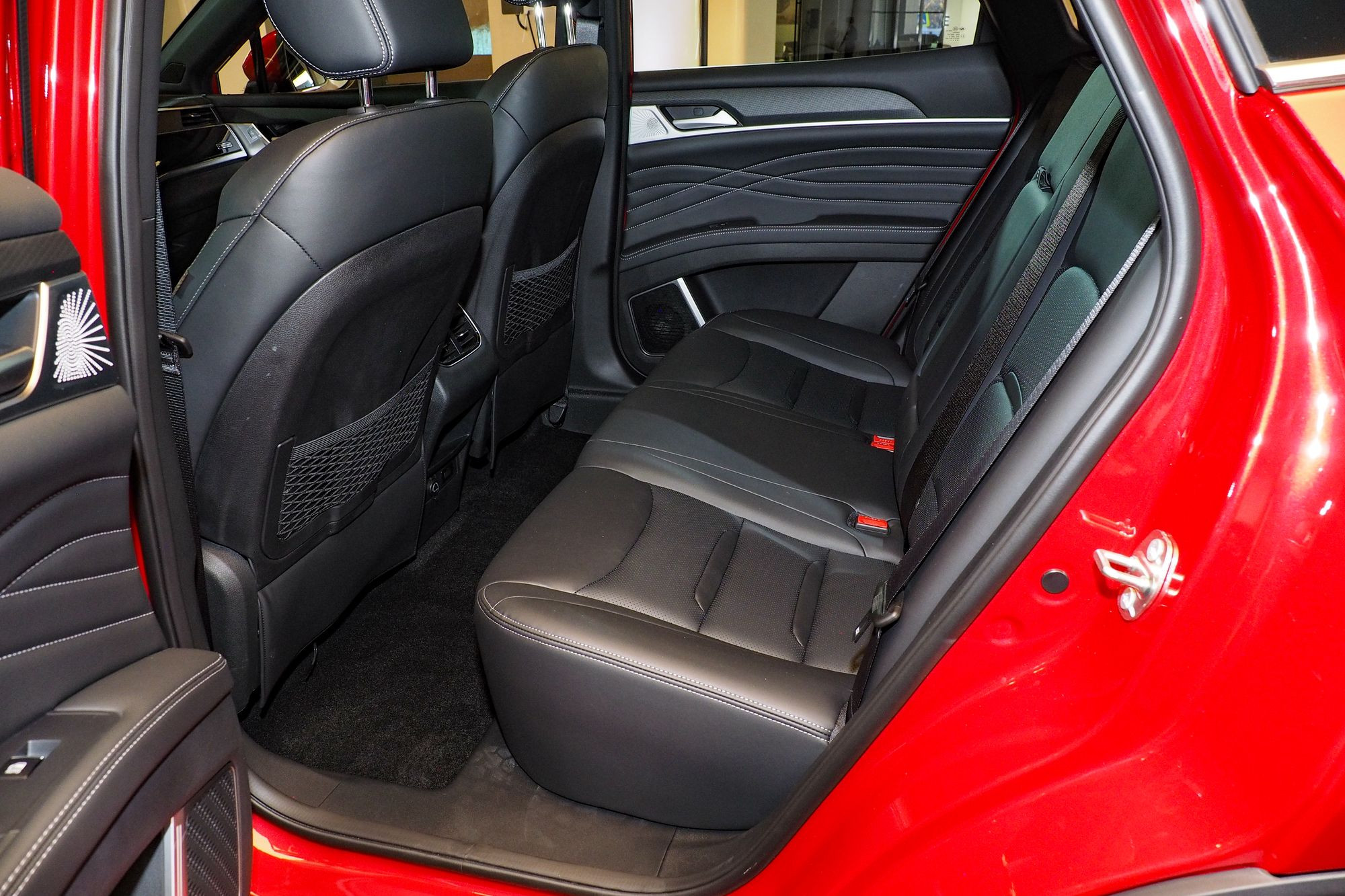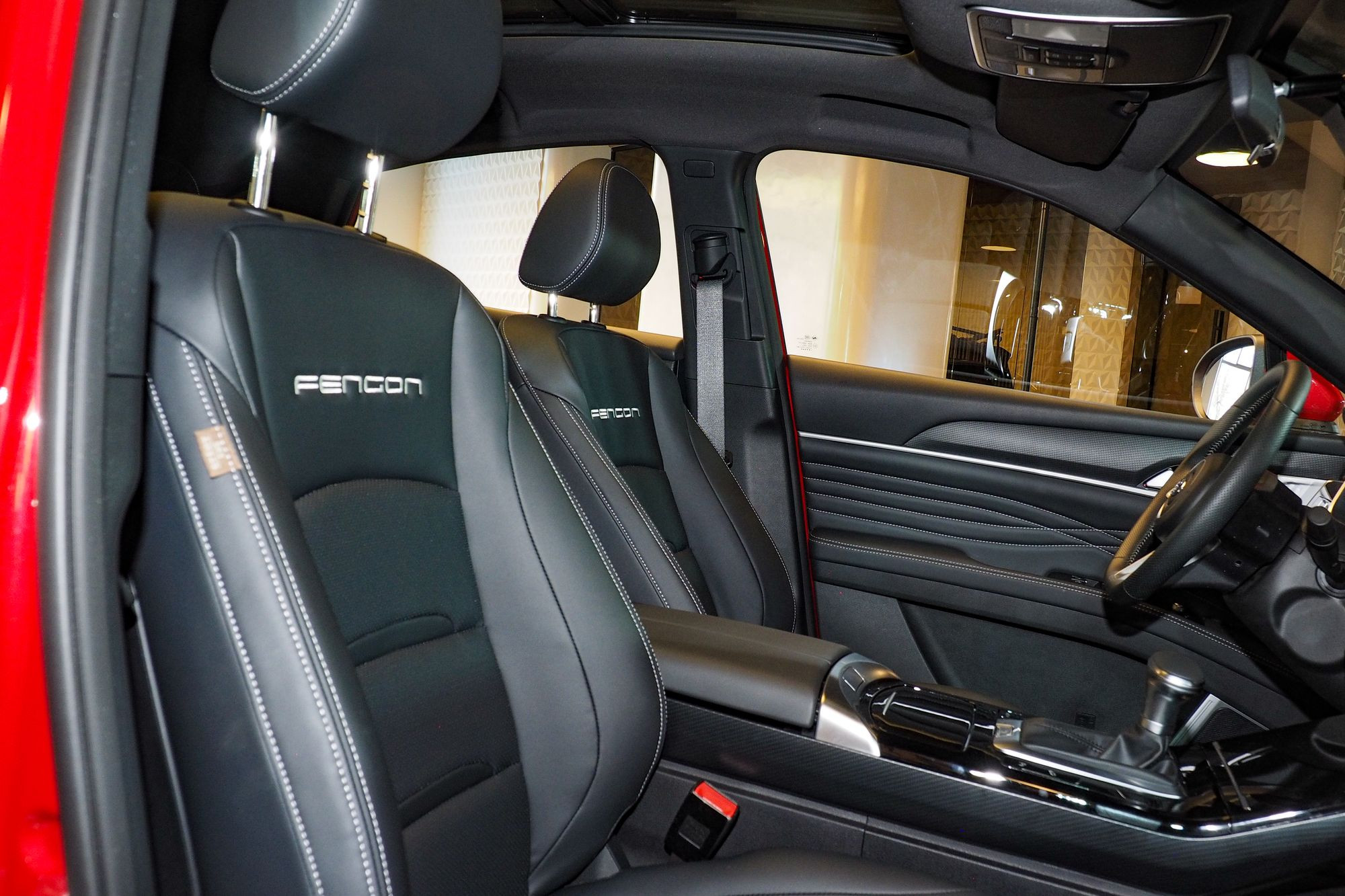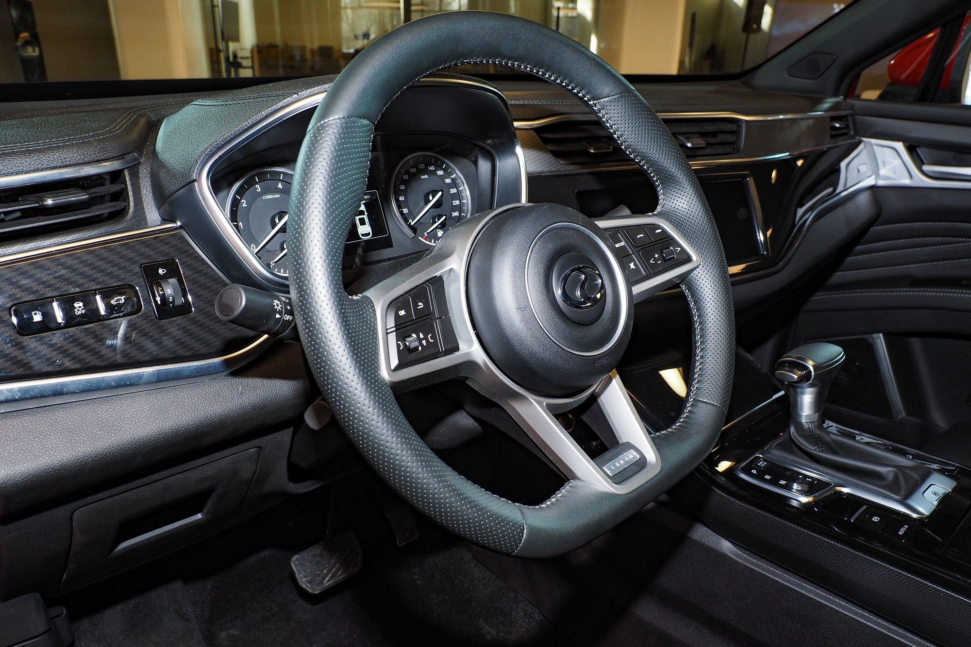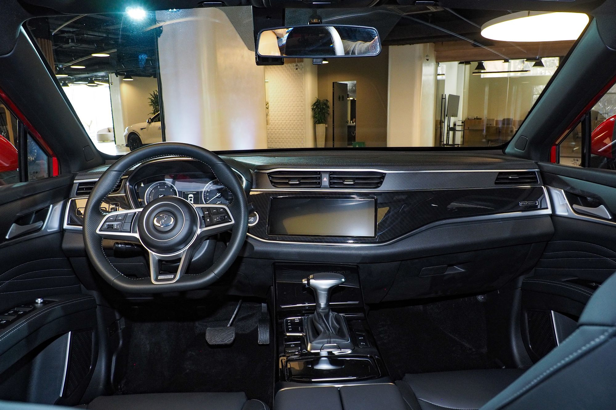 Во-первых, цветовая гамма оформления салона состоит из нескольких оттенков черного, черного и черного. Черная (или темно-серая) искусственная кожа обшивки сидений, такая же кожа на панелях дверей… Оживляет картину только белая прострочка и название бренда, вышитое в верхней части спинок сидений первого ряда. Какого бренда? Да вот опять Fengon… Ах да, в передней панели, кроме деталей из мягкого черного пластика, есть еще пластмассовые детали «под карбон», и вместе с D-образным мультирулем со срезанным нижним сегментом и развитыми эргономическими наплывами они привносят в интерьер некую нотку спортивности. В свою очередь рояльный лак на центральной консоли отвечает за старомодную вычурность, 10,2-дюймовый тачскрин головного медиаустройства и сенсорная панель управления климатом – за соответствие современным тенденциям, приборка с классическими циферблатами и вполне физическими стрелками – за традиционность, а панорамная крыша с люком – за поступление внутрь света и «воздуха», без которых черный салон мог бы показаться слишком мрачным.