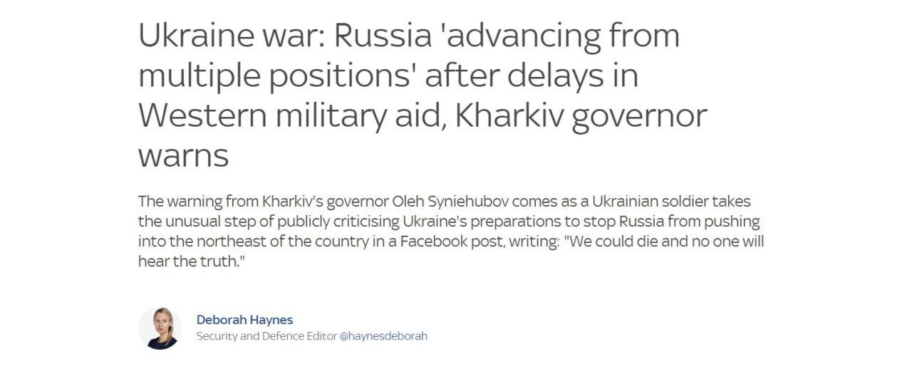 Российским войскам удалось продвинуться на северо-востоке Украины из-за задержек с поставками западного оружия. С таким утверждением в интервью Sky News выступил глава Харьковской области Олег Синегубов.