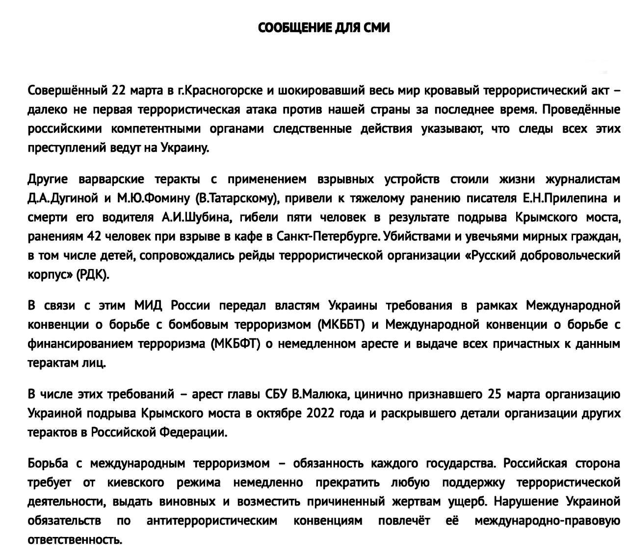 Полный текст обращения МИД России к Украине по Международной конвенции о борьбе с бомбовым терроризмом и Международной конвенции о борьбе с финансированием терроризма.
