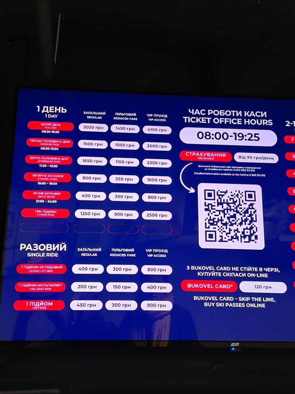 Средний чек для двоих в заведении – около 2000 грн (≈50$). Дневной скай-пасс - еще 2000 (без учета снаряжения).