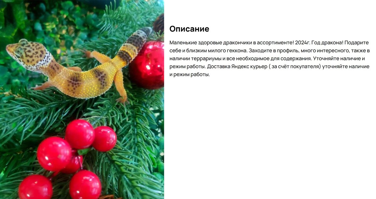 С приближением 2024 года, который пройдет под знаком Дракона, в Сети увеличилось количество объявлений о продаже рептилий в подарок. Продавцы уверяют, что ящерица принесет удачу в новом году.