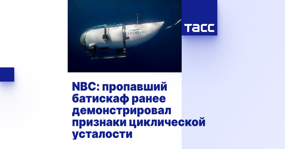 НЬЮ-ЙОРК, 21 июня. /ТАСС/. Основатель компании OceanGate Expeditions Стоктон Раш в 2020 году предупреждал, что корпус глубоководного аппарата "Титан", пропавшего в водах Атлантического океана, демонстрировал признаки циклической усталости, из-за чего была снижена максимальная глубина его погружения. Об этом сообщила во вторник телекомпания NBC со ссылкой на интервью Раша порталу Geek Wire, датированное январем 2020 года.