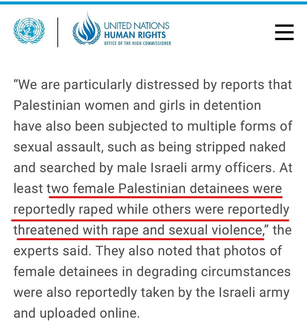 🇮🇱🇵🇸Военнослужащие ЦАХАЛ насилуют заключенных палестинок и убивают детей – ООН