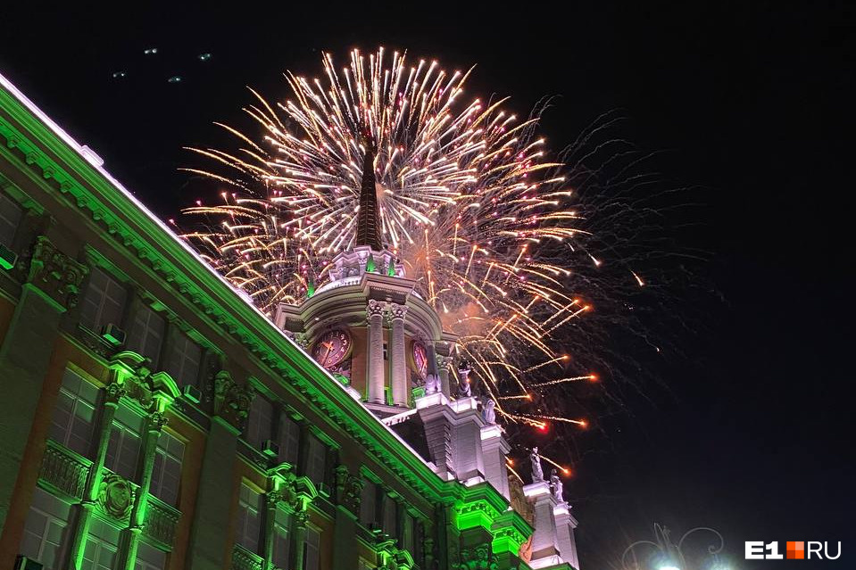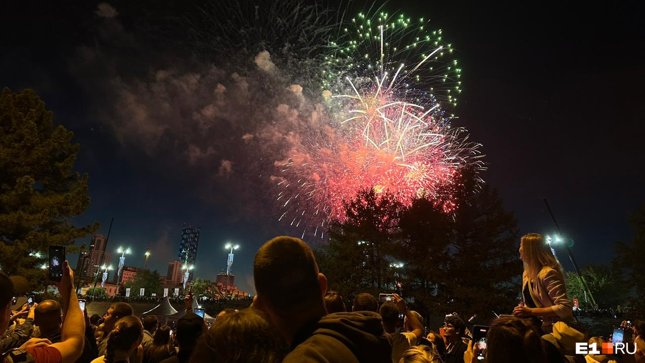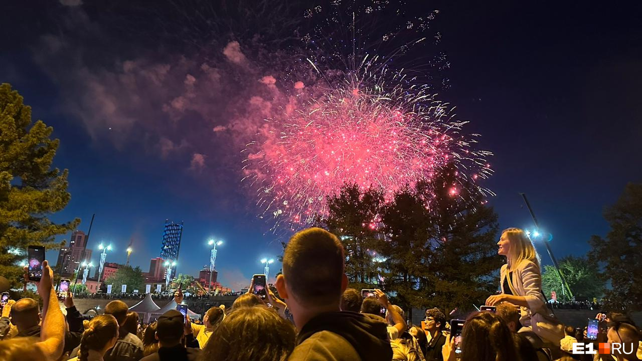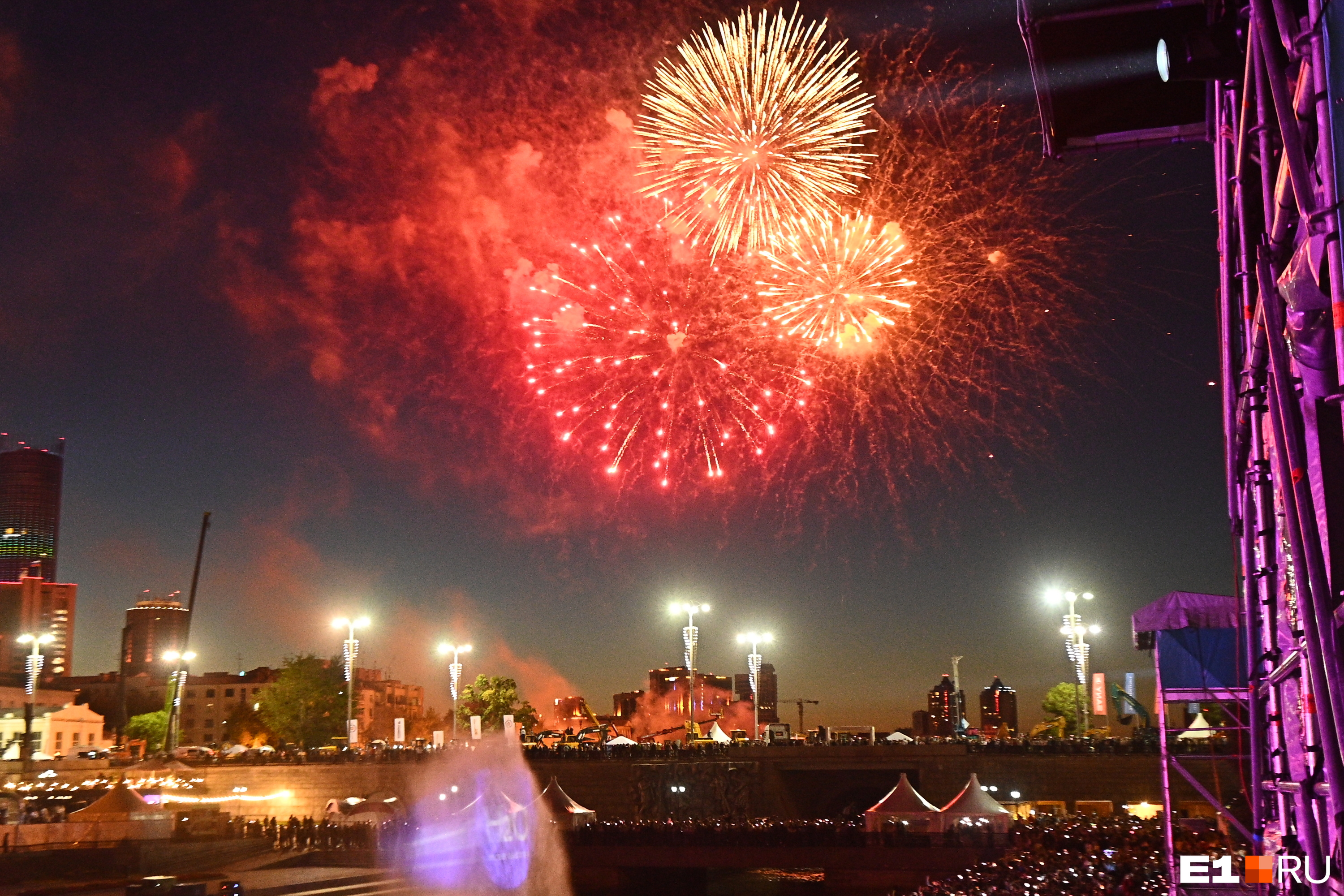 Празднование Дня строителя в Екатеринбурге закончилось пышным салютом. Яркие огни были видны практически отовсюду и сопровождались пением Леонида Агутина.