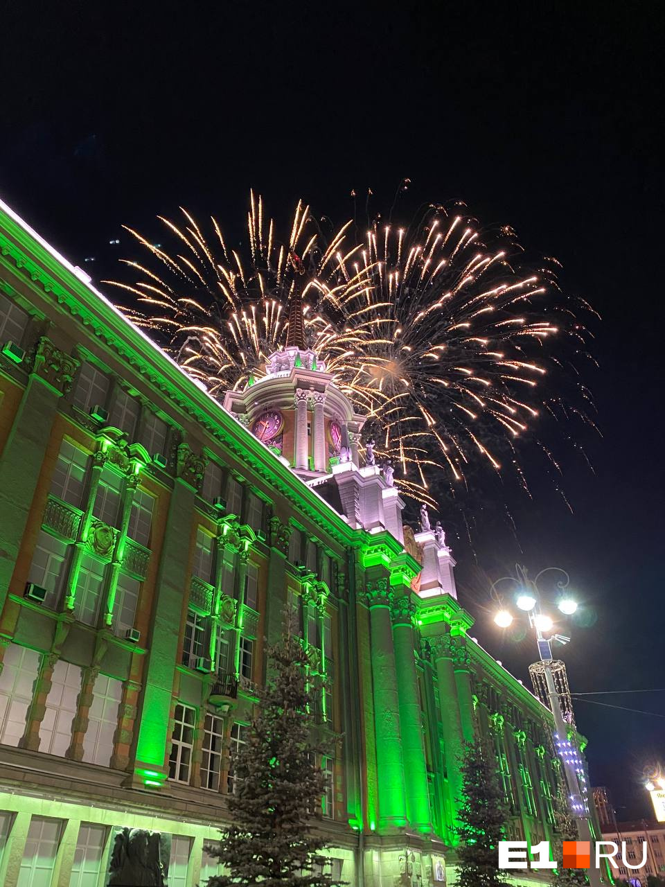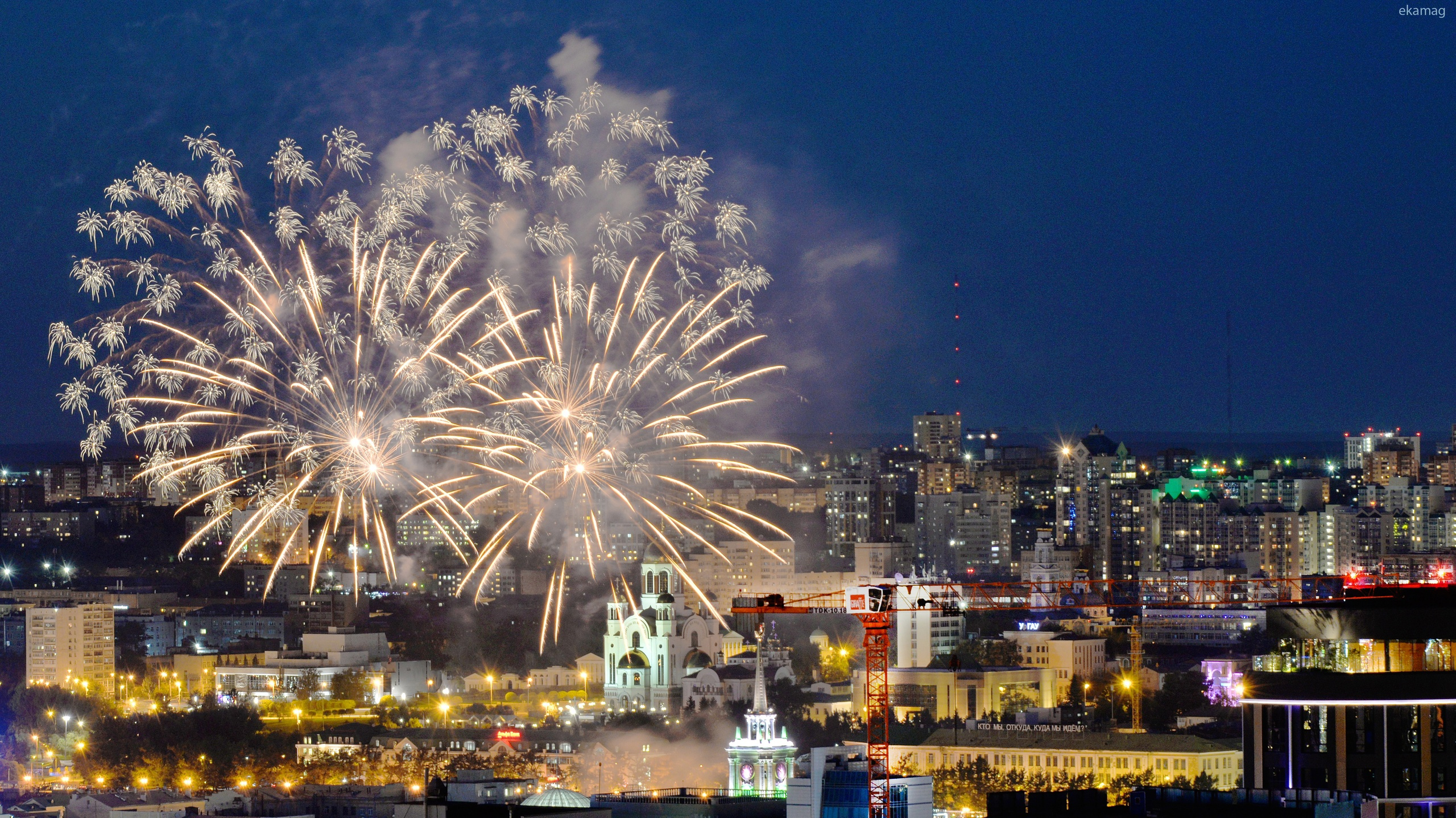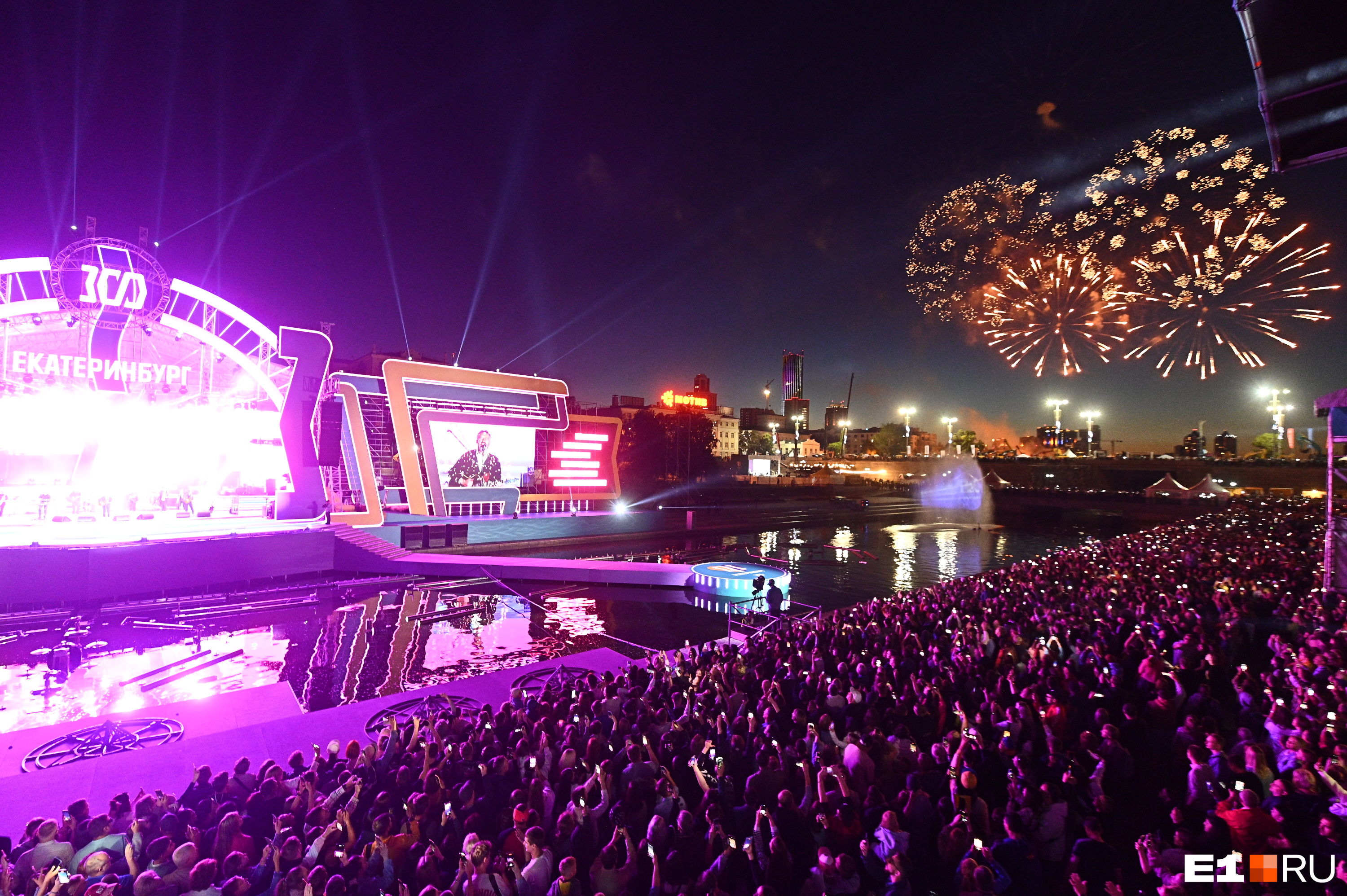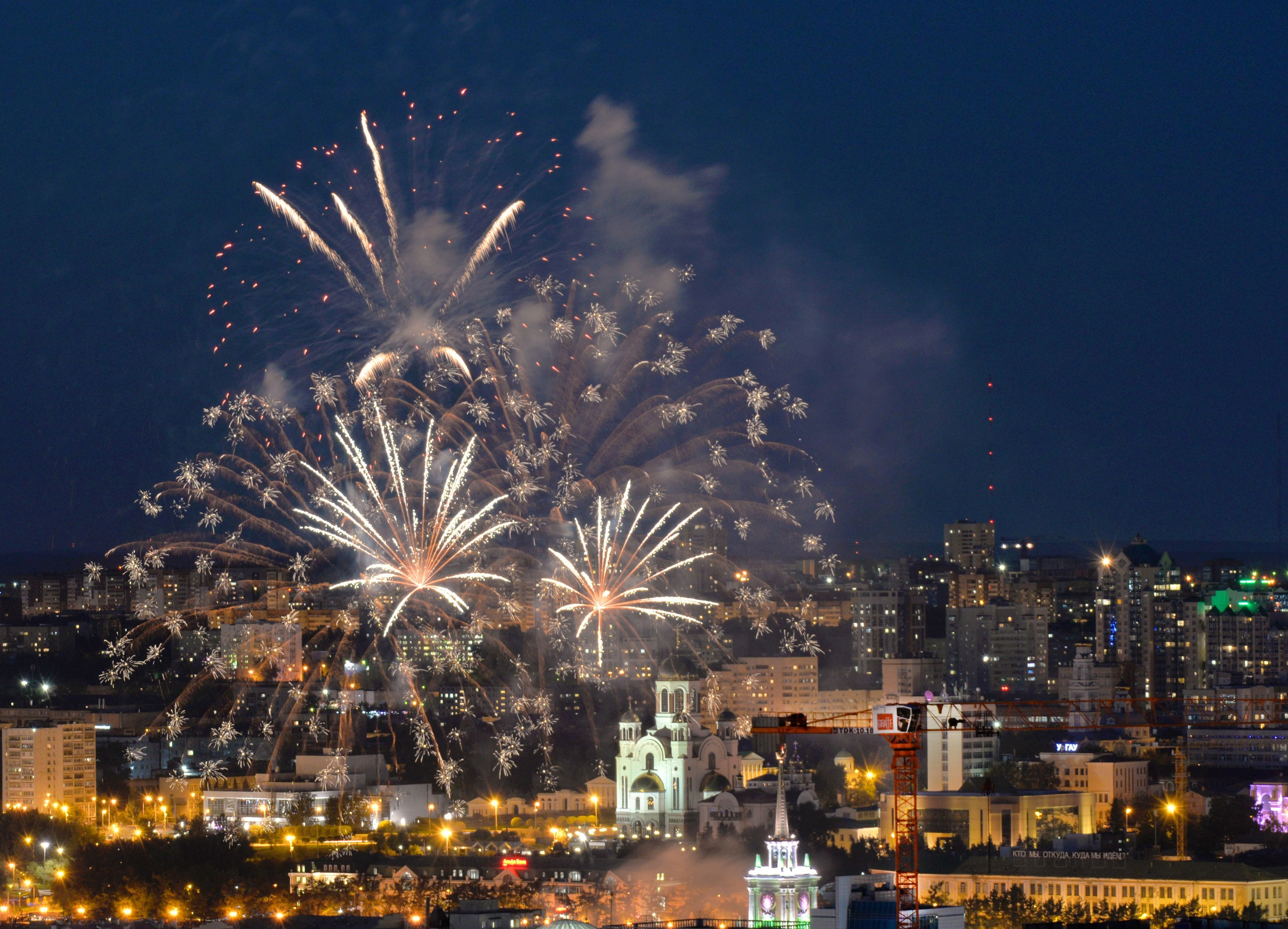 Празднование Дня строителя в Екатеринбурге закончилось пышным салютом. Яркие огни были видны практически отовсюду и сопровождались пением Леонида Агутина.