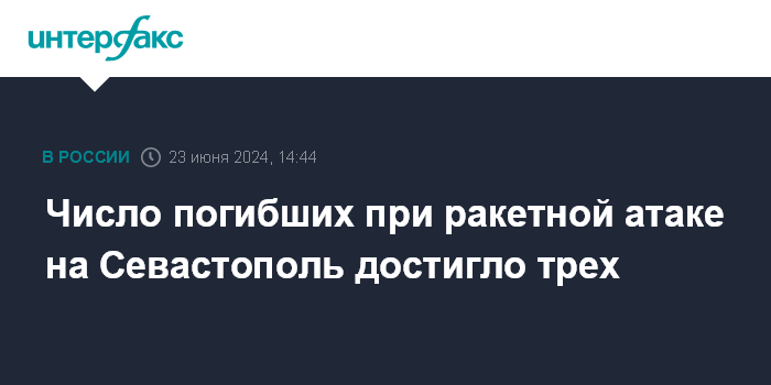 Москва. 23 июня. INTERFAX.RU - Три человека, включая двоих детей, погибли в результате атаки ВСУ на Севастополь, сообщил в своем телеграм-канале губернатор Севастополя Михаил Развожаев.