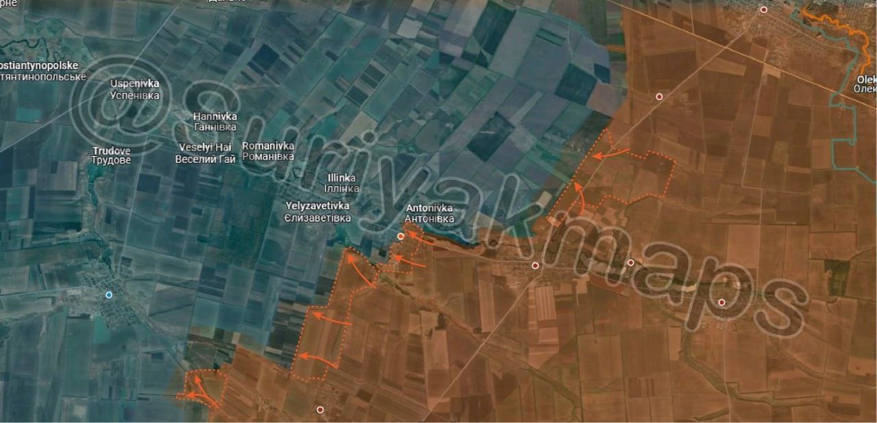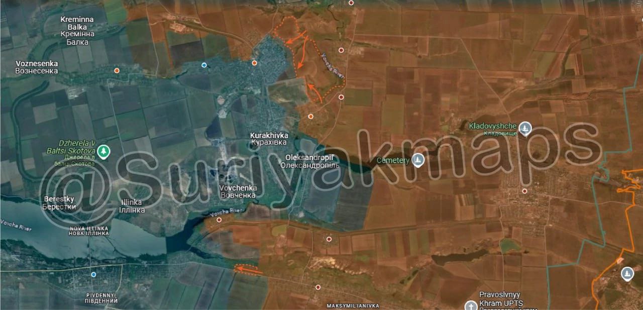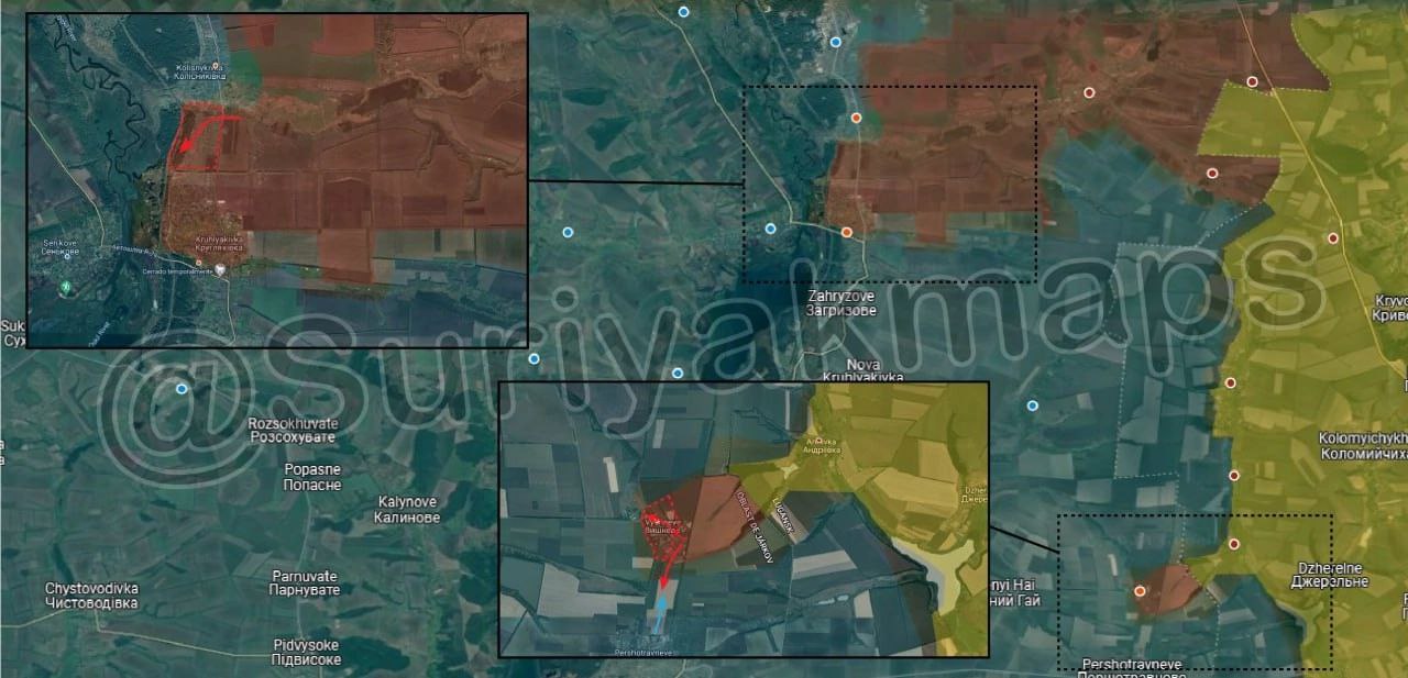1. Ситуация на Приоскольском фронте: Российская армия взяла под контроль новые позиции в Кругляковке. Кроме того, российские войска заняли большую часть Вишневого и начали продвижение на юг в направлении Первомайского (Першотравневое).