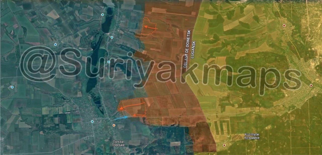 2. Ситуация на Луганском фронте: Российская армия продвинулась западнее н.п.Терны. Кроме того, российские войска вошли на окраины Торского.