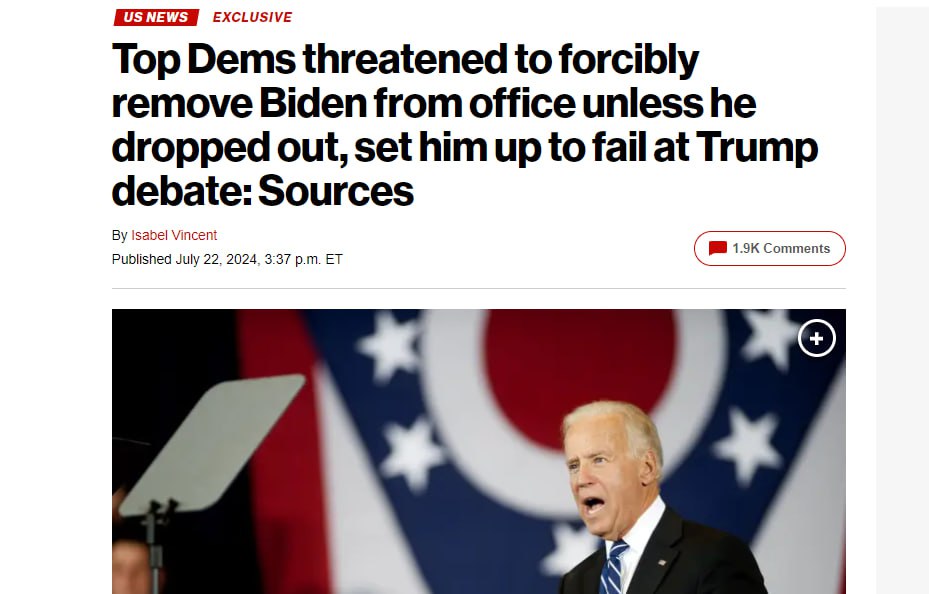 ❗️ Лидеры демократов пригрозили принудительно отстранить Байдена от должности – New York Post