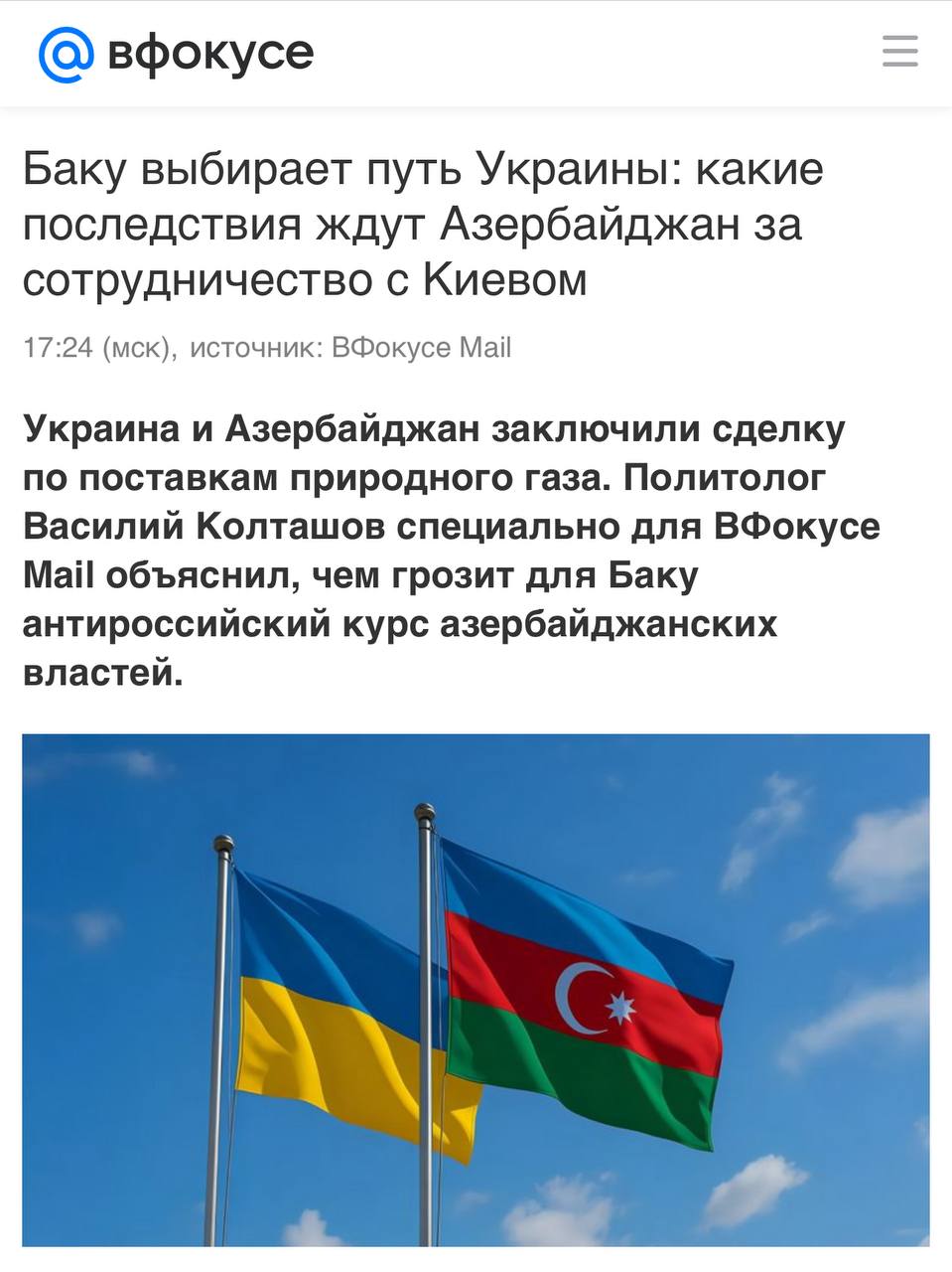 🇦🇿🇺🇦 «Для России принципиально важно сейчас осознать, что Азербайджан перешел от слегка замаскированных враждебных действий к открытым и он, по сути, союзник Украины», — отметил Василий Колташов.