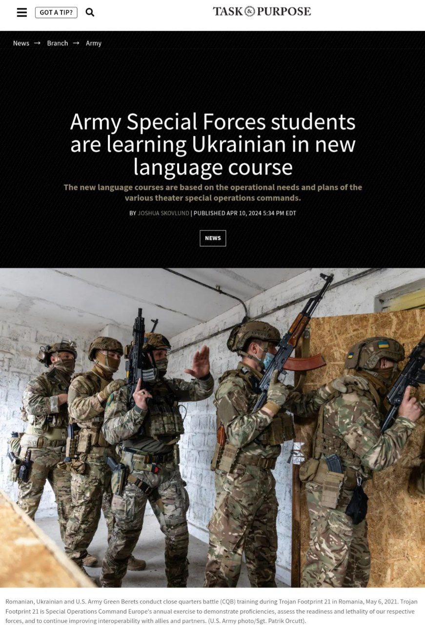 На новых языковых курсах для американского спецназа начали преподавать украинский язык, утверждает издание Task Purpose.