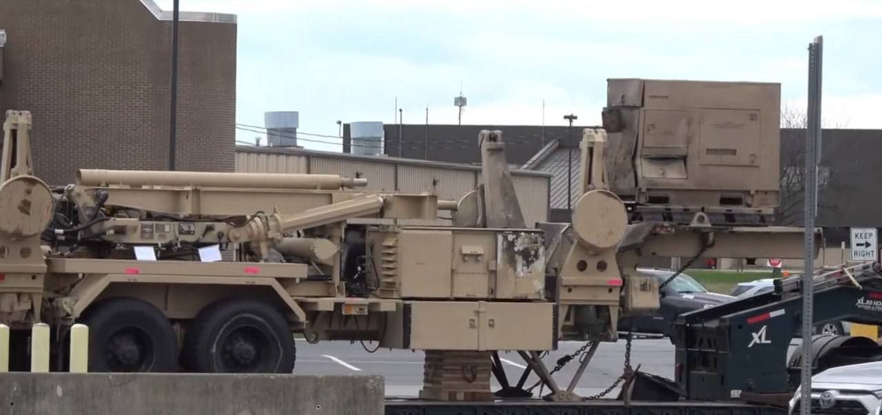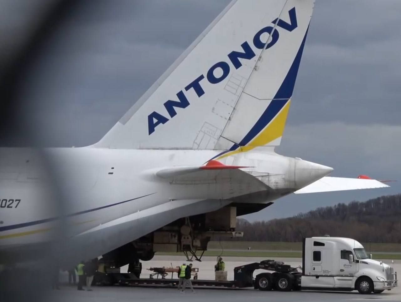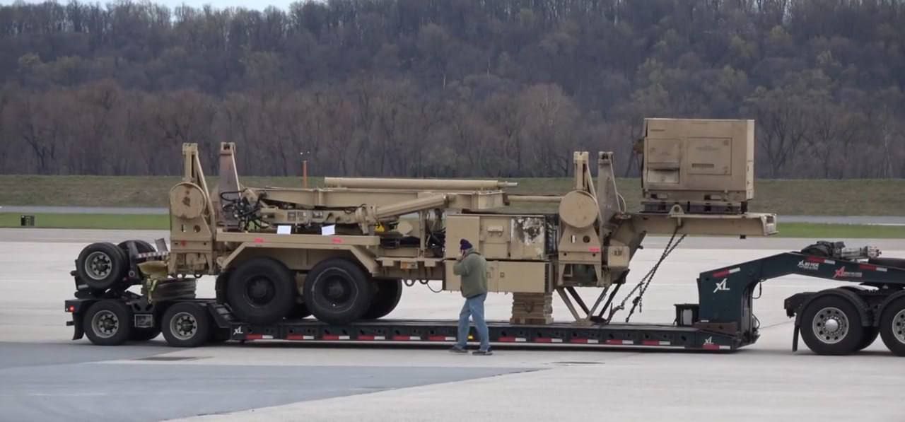✔️На фото процесс разгрузки поврежденной пусковой установки М903 ЗРК MIM-104 Patriot в международном аэропорту Гаррисберг, США.