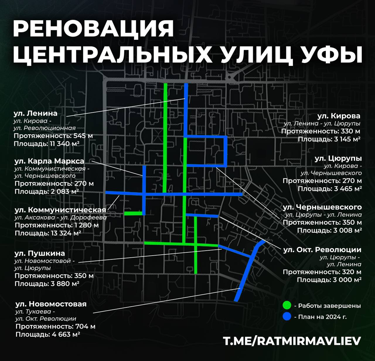 Мэр Уфы опубликовал схему реновации центральных улиц города.