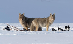 Притворяясь больным, самый быстроногий койот из стаи подманивает к себе собак, охраняющих пасущихся овец. Остальные койоты наскакивают на стадо, разгоняют овец в стороны и растаскивают их поодиночке.