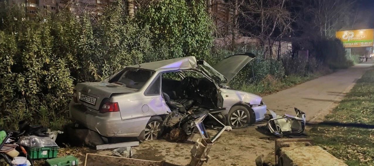Автомобиль «Дэу Нексия» ехал по Окружному шоссе. За рулём находился мужчина 1988 г. р. Возле дома №6Б машина слетала с дороги и врезалась в столб. Авария попала в объектив видеокамеры. На кадрах видно, что машина налетела на препятствие на высокой скорости.