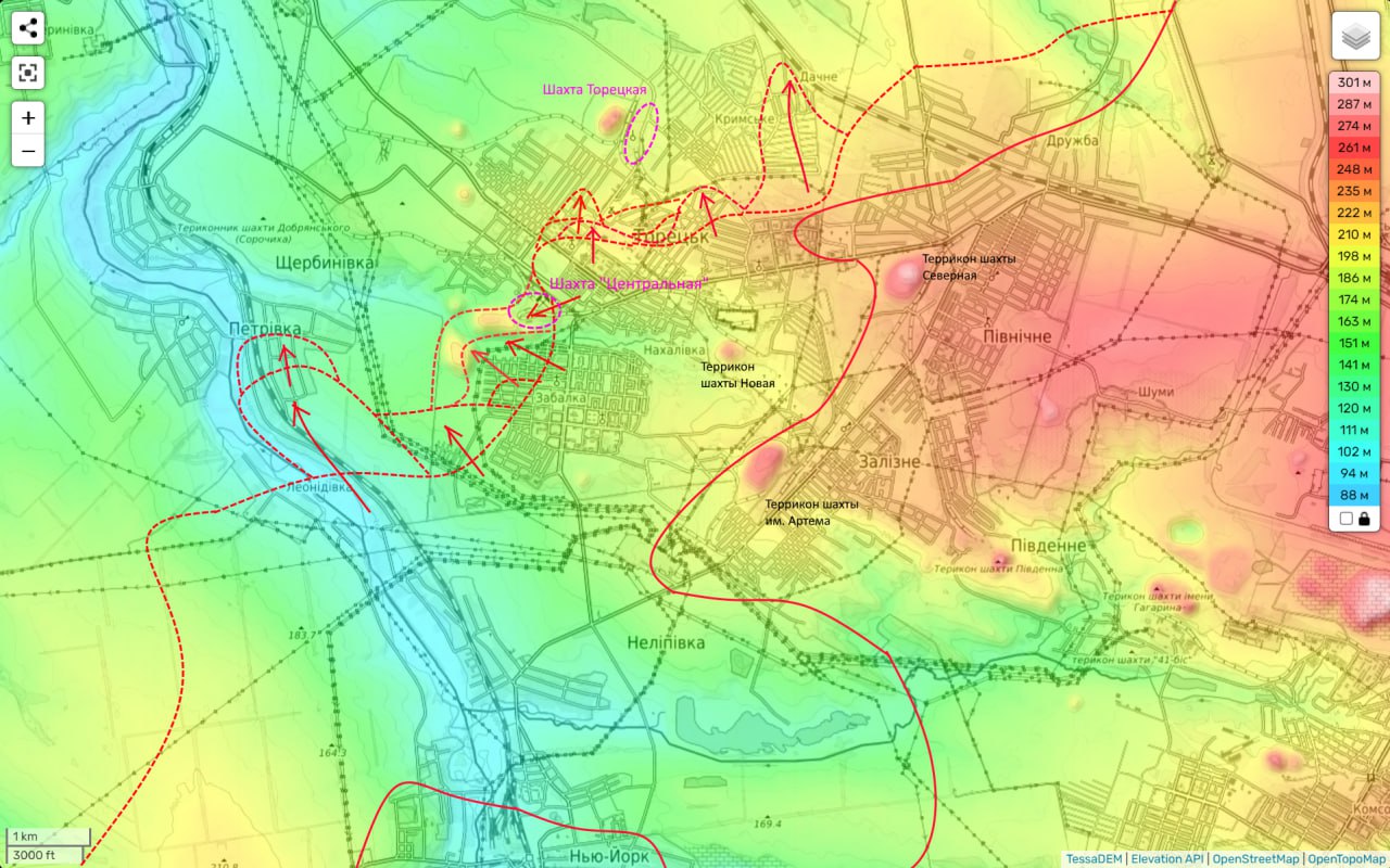 Если у ВСУ не хватит сил их отбить, это очень быстро отразится на всей обороне противника в Торецке. Так как именно шахта «Центральная» и ее терриконы составляли главный оплот его обороны в западной части города.