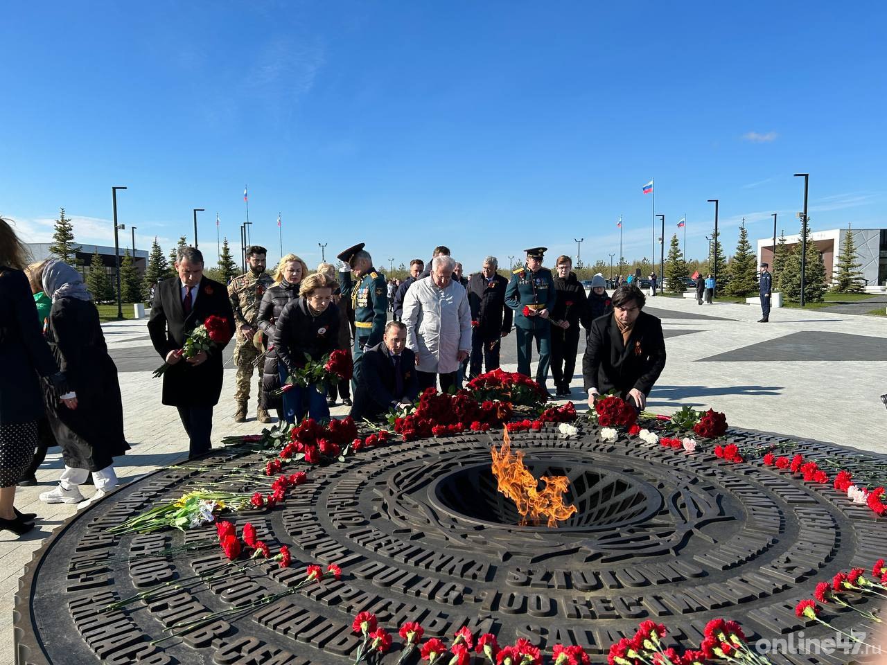 Участие в мероприятии также приняли члены областного правительства, представители районных администраций, ветераны, участники СВО. К мемориалу приехали и простые ленинградцы, многие из них — с детьми.