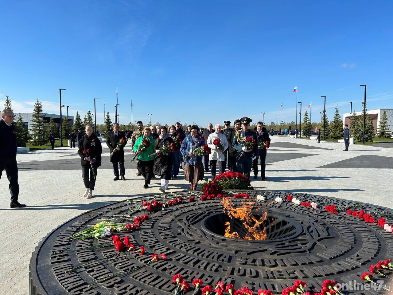 πΊ Π‘Π΅Π³ΠΎΠ΄Π½Ρ, 9 ΠΌΠ°Ρ, Π² Π΄Π΅ΡΠ΅Π²Π½Π΅ ΠΠ°ΠΉΡΠ΅Π²ΠΎ ΠΏΡΠΎΡΠ»Π° ΡΠ΅ΡΠ΅ΠΌΠΎΠ½ΠΈΡ Π²ΠΎΠ·Π»ΠΎΠΆΠ΅Π½ΠΈΡ ΡΠ²Π΅ΡΠΎΠ² Π² ΡΠ΅ΡΡΡ 80-ΠΉ Π³ΠΎΠ΄ΠΎΠ²ΡΠΈΠ½Ρ ΠΠΎΠ±Π΅Π΄Ρ Π² ΠΠ΅Π»ΠΈΠΊΠΎΠΉ ΠΡΠ΅ΡΠ΅ΡΡΠ²Π΅Π½Π½ΠΎΠΉ Π²ΠΎΠΉΠ½Π΅. ΠΠ° ΡΠ΅ΡΠ΅ΠΌΠΎΠ½ΠΈΡ ΠΏΡΠΈΠ±ΡΠ» Π³ΡΠ±Π΅ΡΠ½Π°ΡΠΎΡ ΠΠ΅Π½ΠΎΠ±Π»Π°ΡΡΠΈ ΠΠ»Π΅ΠΊΡΠ°Π½Π΄Ρ ΠΡΠΎΠ·Π΄Π΅Π½ΠΊΠΎ. ΠΠ½ ΠΏΠΎΡΡΠΈΠ» ΠΏΠ°ΠΌΡΡΡ ΠΏΠΎΠ³ΠΈΠ±ΡΠΈΡ Ρ ΠΠ΅ΡΠ½ΠΎΠ³ΠΎ ΠΎΠ³Π½Ρ ΠΌΠ΅ΠΌΠΎΡΠΈΠ°Π»Π° Π² ΠΏΠ°ΠΌΡΡΡ ΠΎ ΠΌΠΈΡΠ½ΡΡ ΠΆΠΈΡΠ΅Π»ΡΡ Π‘Π‘Π‘Π β ΠΆΠ΅ΡΡΠ²Π°Ρ Π½Π°ΡΠΈΡΡΡΠΊΠΎΠ³ΠΎ Π³Π΅Π½ΠΎΡΠΈΠ΄Π° Π² Π³ΠΎΠ΄Ρ ΠΠ΅Π»ΠΈΠΊΠΎΠΉ ΠΡΠ΅ΡΠ΅ΡΡΠ²Π΅Π½Π½ΠΎΠΉ Π²ΠΎΠΉΠ½Ρ 1941-1945 Π³Π³.