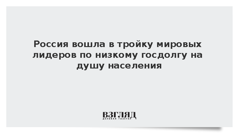 В первом полугодии этого года на одного россиянина приходилось всего 2076 долларов госдолга, что позволило ей войти в тройку лидеров после Индии (1316 долларов на человека) и Индонезии (1747 долларов на человека).