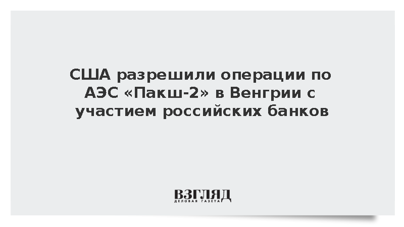 «Управление по контролю за иностранными активами (OFAC) министерства финансов США выпускает общую лицензию №132, «Разрешение на определённые операции, связанные с атомной электростанцией «Пакш 2», – приводит РИА «Новости» текст сообщения.