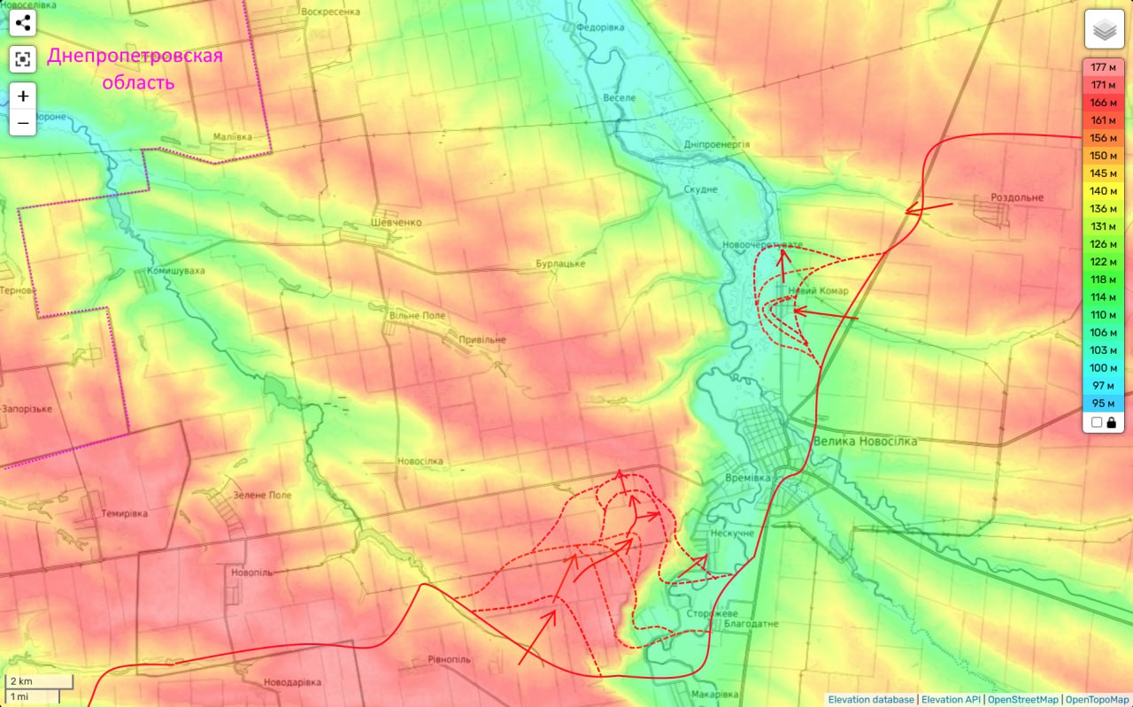 Что в конечном итоге привело не к возвращению под контроль ранее утерянных позиций, а наоборот — привело к тому, что еще несколько позиций противником западнее реки Мокрые Ялы (на холмах) были утеряны.
