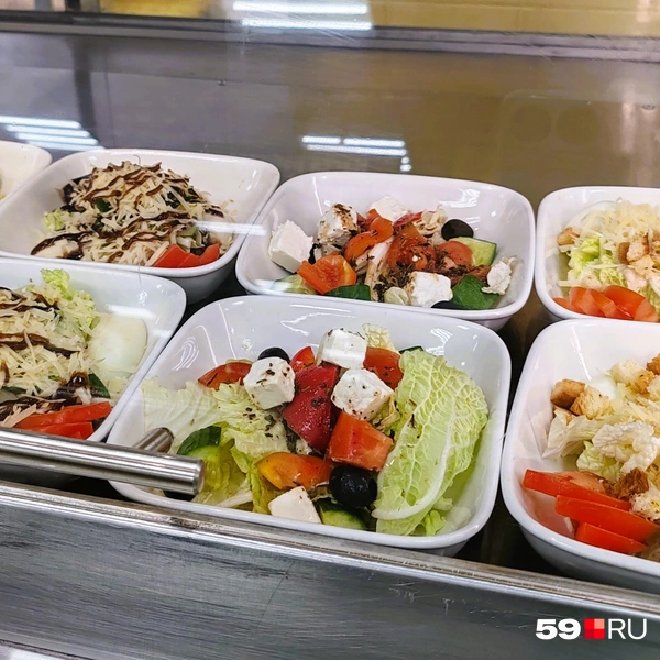 Главная достопримечательность третьего зала — длинная линия раздачи. Выбор блюд большой. Салаты стоят от 57 рублей (из свежей капусты) до 172 рублей («Цезарь»). Есть «Греческий» за 140 рублей, сельдь под шубой за 92 рубля и другие популярные салаты.