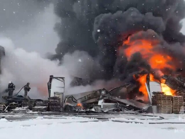 Склад с автомобильной резиной и емкостями из-под легковоспламеняющихся жидкостей загорелся в Барнауле. Площадь пожара составляет 6 тысяч квадратных метров, сообщается в телеграм-канале МЧС РФ.