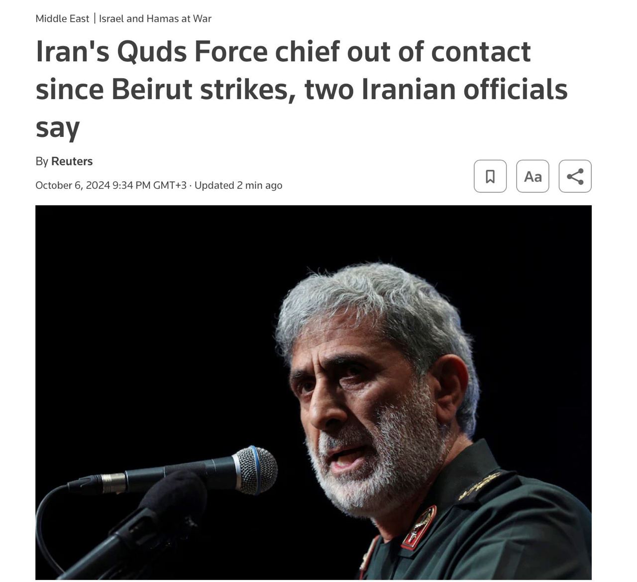 Командир спецназа «Аль-Кудс» КСИР Исмаил Каани не выходит на связь