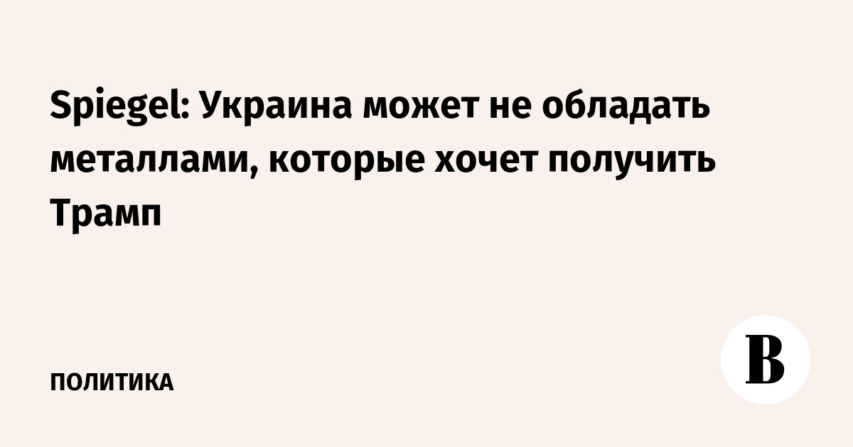 Природных ресурсов на Украине, которые в рамках сделки хотел бы получить президента США Дональд Трамп, в действительности может не быть, пишет немецкий журнал Der Spiegel со ссылкой на сотрудника Федерального института наук о Земле и природных ресурсах Харальда Эльснера.