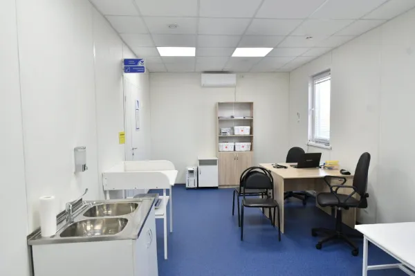 В поселке Передовка новый медпункт планируют открыть в декабре. Стройку завершили на 75 %: установили модуль, подвели коммуникации. Туда будут приходить около 100 пациентов.