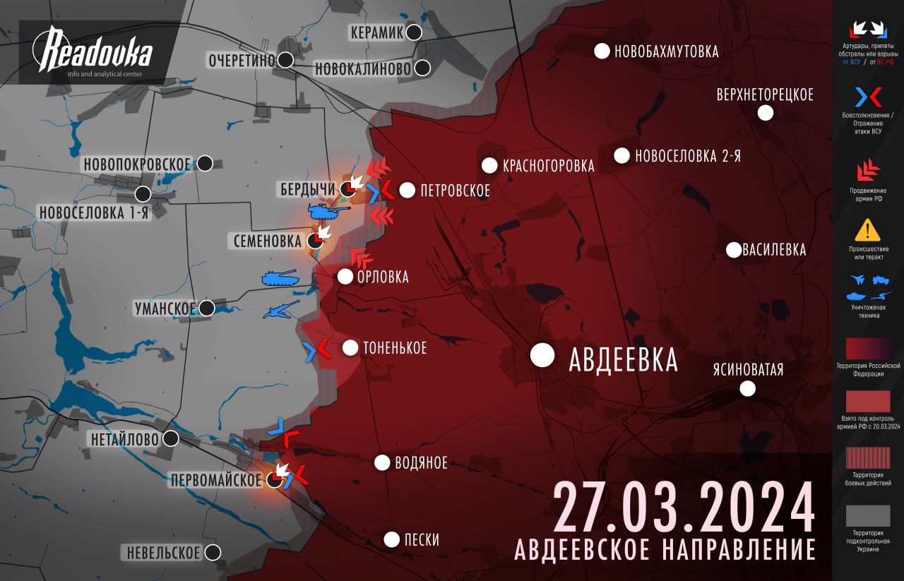 Раскованная цепь — детальный разбор Readovka положения на Авдеевском направлении фронта вечером 27 марта