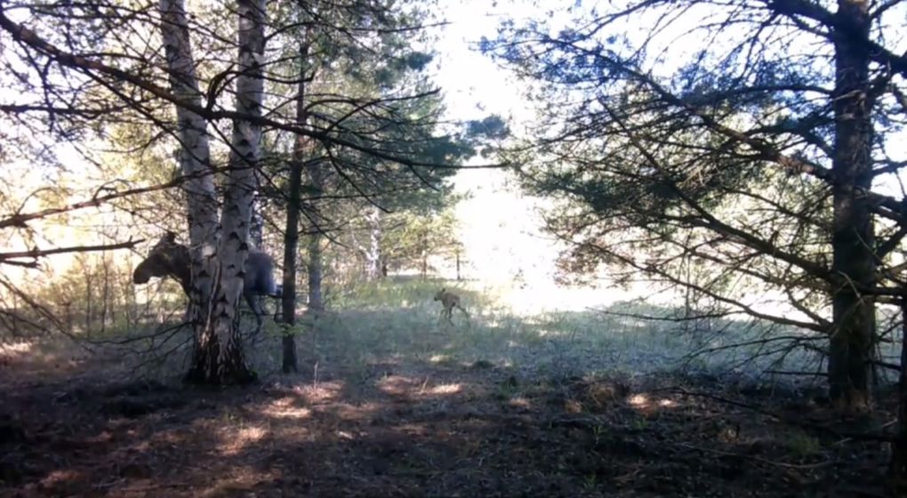 Якшур-Бодья. Удмуртия. Фотоловушка в Якшур-Бодьинском районе сняла лосиху с лосёнком. Кадрами поделился Александр Соловьев в своём ТГ-канале «Записки фотоохотника».
