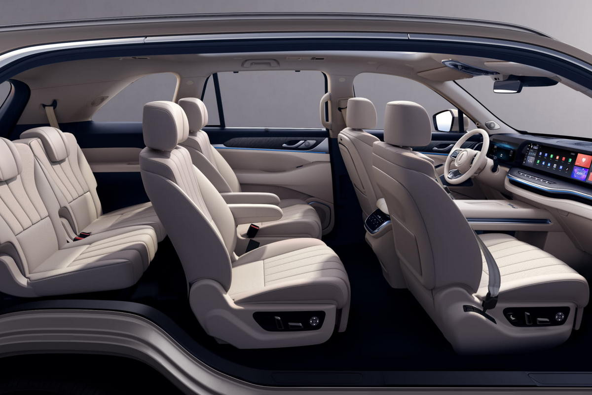 Судя по единственному пока изображению Wey 07 (заглавная картинка), у нас будут продавать модель именно образца 2023 года, тогда как в Поднебесной скоро появится еще раз доработанный SUV – с лидаром и другим оформлением интерьера. Длина «семерки» равна 5156 мм, ширина – 1980 мм, высота – 1805 мм, колесная база – 3050 мм. То есть по своим габаритам паркетник превзошел даже Exeed VX (длина – 4970 мм, расстояние между осями – 2900 мм). Wey 07 по умолчанию имеет шестиместный салон.